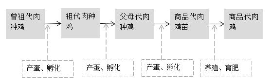 肉雞產(chǎn)業(yè)是一個(gè)由若干密切相關(guān)的以縱向血緣關(guān)系為紐帶的多元的代際畜禽產(chǎn)業(yè),從曾祖代肉種雞、祖代肉種雞、父母代肉種雞、商品代肉雞到雞肉產(chǎn)品是一個(gè)完整、系統(tǒng)的代次繁育流程。肉雞代次繁育流程具體情況如下: