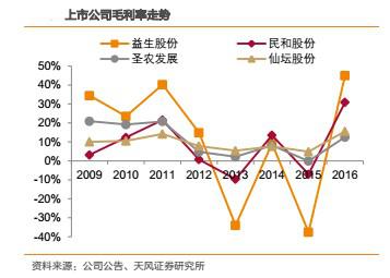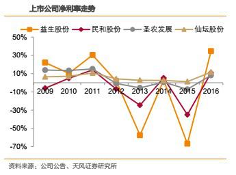 受產(chǎn)品價(jià)格彈性影響,越靠近上游,盈利能力的波動(dòng)越大。財(cái)務(wù)指標(biāo)上,毛利率、凈利率的波動(dòng),益生股份>民和股份>圣農(nóng)發(fā)展>仙壇股份。