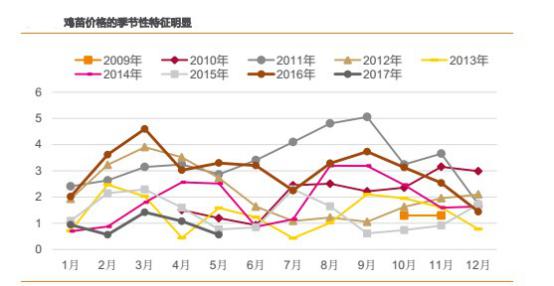 從歷史數(shù)據(jù)來看,年內(nèi)禽類產(chǎn)品價(jià)格具有季節(jié)性,年內(nèi)一般有兩輪上漲: