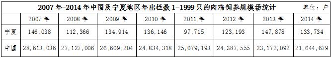 從以上數(shù)據(jù)分析可知,寧夏的肉雞飼養(yǎng)規(guī)模上得不到很好的提升,大多數(shù)都僅僅是靠家庭小規(guī)模飼養(yǎng)為主,大規(guī)模的飼養(yǎng)場在寧夏地區(qū)非常匱乏。不僅對寧夏肉雞行業(yè)的市場影響非?;靵y,也不能達(dá)到更高更優(yōu)質(zhì)的產(chǎn)量,提升寧夏肉雞行業(yè)市場競爭力顯的尤為困難。