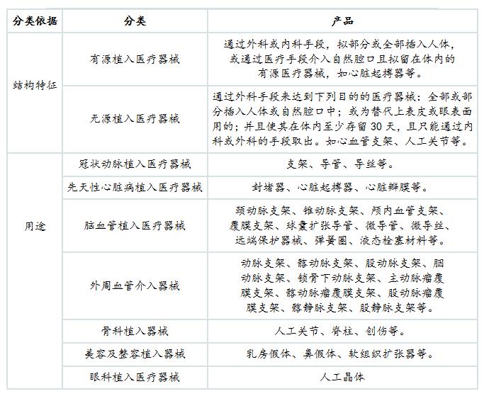 表2:植入醫(yī)療器械產(chǎn)品分類