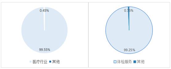 圖5、6、7是美年健康的營業(yè)收入構(gòu)成圖。按行業(yè)分,營業(yè)收入中,醫(yī)療行業(yè)占比99.55%,其他占比0.45%;按產(chǎn)品分,營業(yè)收入中,體檢服務(wù)占比99.25%,其他占比0.25%;按地區(qū)分布,營業(yè)收入中,華東區(qū)、華南區(qū)、華北區(qū)、西南區(qū)、中南區(qū)、其他分別占比為28.57%、16.57%、13.28%、12.61%、12.17%、16.80%。