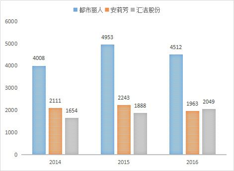 考慮到使用萊卡材料內(nèi)衣企業(yè)主要是中高端企業(yè),企業(yè)占市場份額較大,數(shù)據(jù)可獲取等因素,本部分主要針對中高端內(nèi)衣企業(yè)安莉芳集團(tuán)(以下簡稱為:安莉芳)、深圳匯潔集團(tuán)股份有限公司(以下簡稱為:匯潔股份)、大眾性企業(yè)廣東都市麗人實(shí)業(yè)有限公司(以下簡稱:都市麗人)進(jìn)行分析。